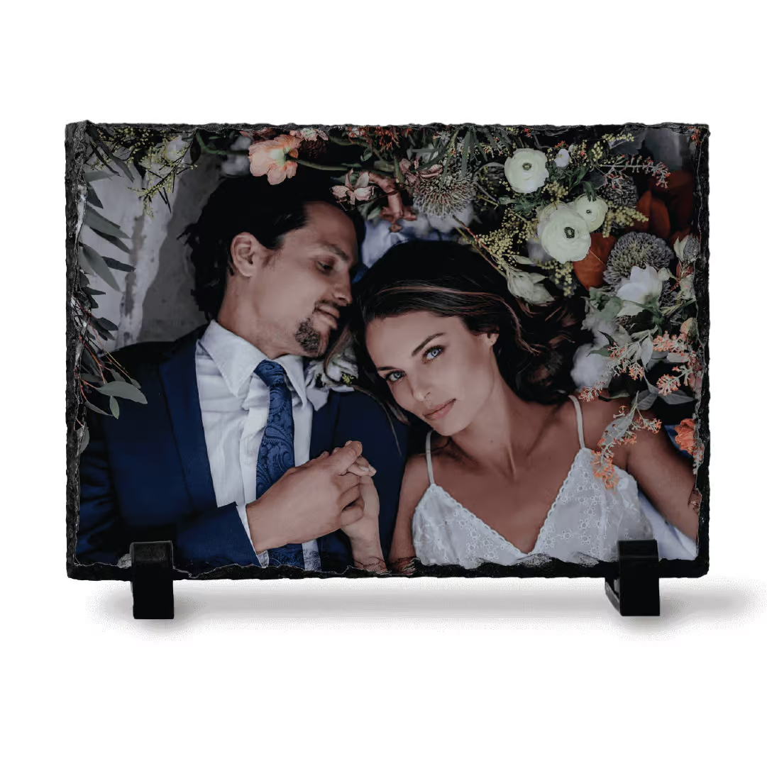 Ardezia este o roca personalizabila, cu margini sparte. Aceasta placa de ardezie poate fi personalizata cu imagine, text sau ambele.