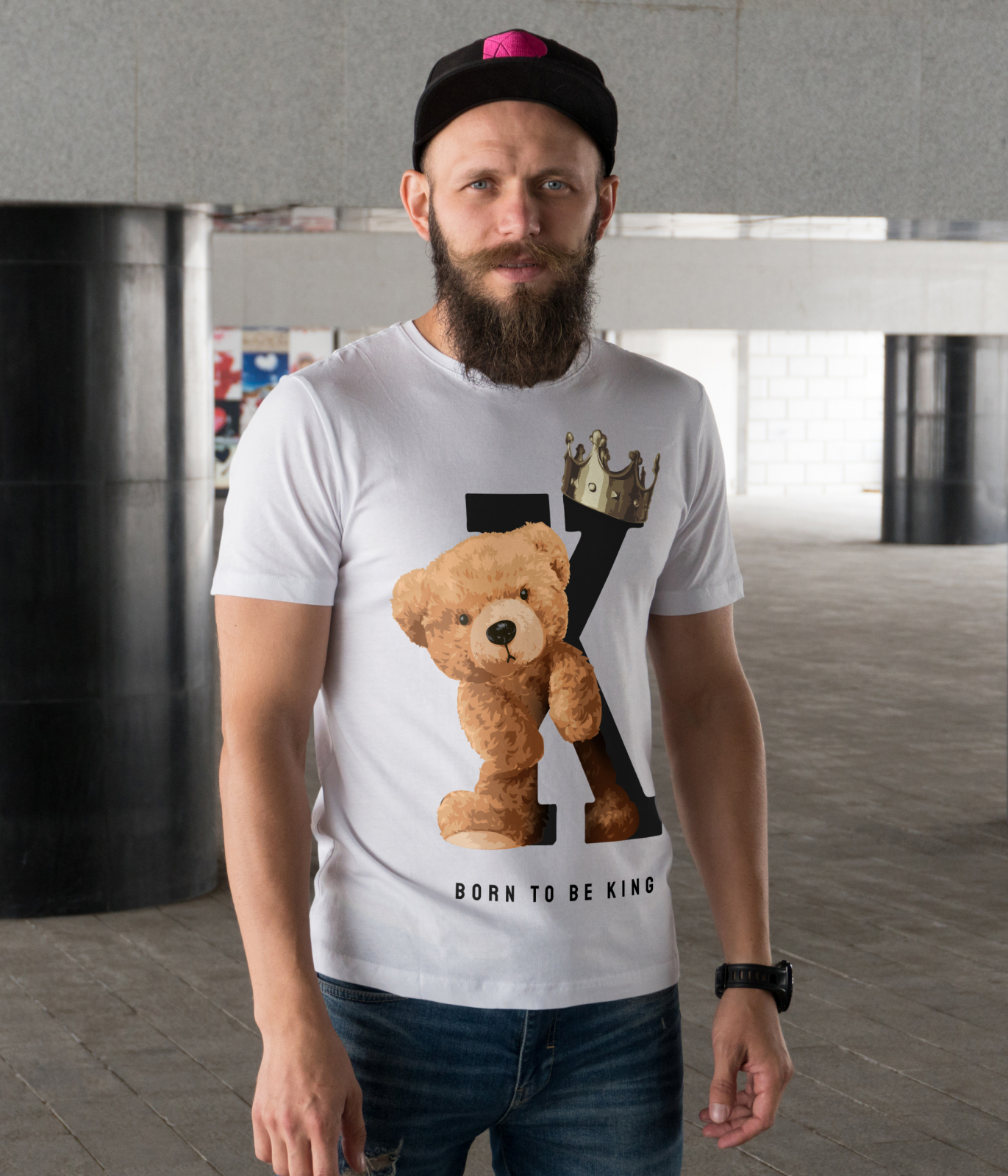 Tricou Alb cu imprimeu Born to be King ”Teddy”
